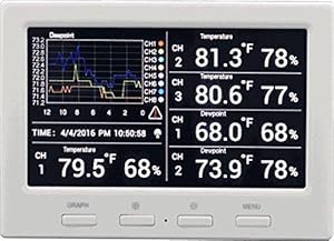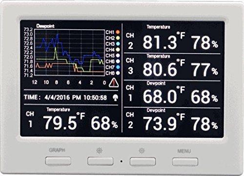 The comprehensive data logger includes a TFT full color display with graphing and monitoring of temperature, humidity, dew point and heat index, and allows you to monitor up to 8 channels at the same time.